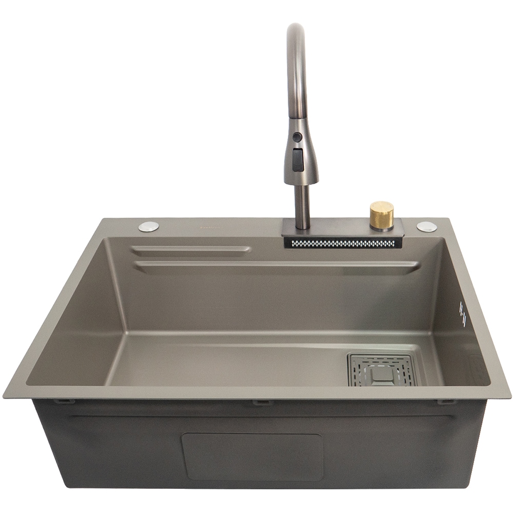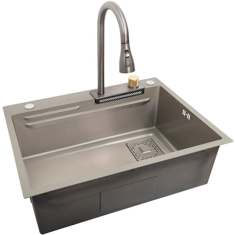 Pachet chiuveta bucatarie SANDONNA HD6850, 1 1/2 cuve, inox + baterie + accesorii, gri