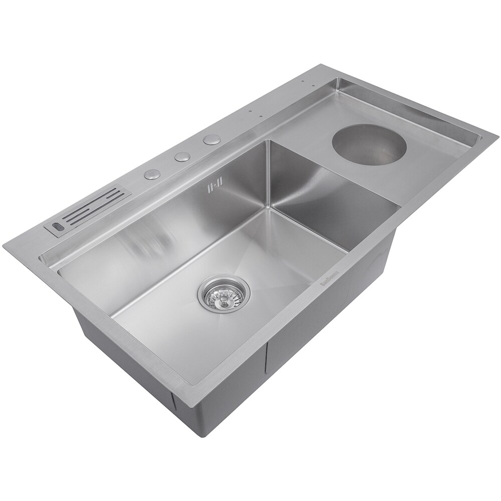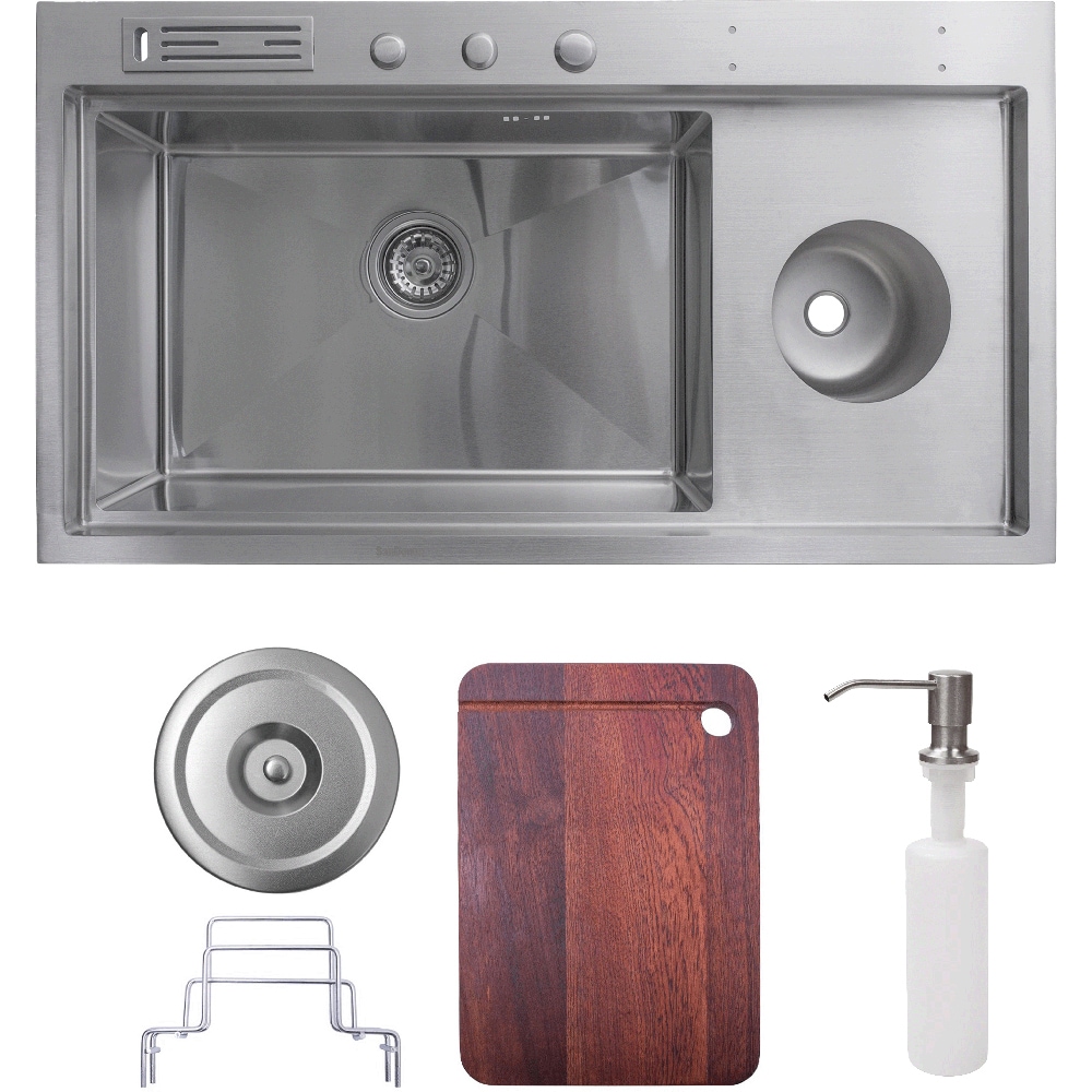 Pachet chiuveta bucatarie SANDONNA HD9250, 1 1/2 cuve, inox + tocator + dozator sapun + suport tacamuri, gri