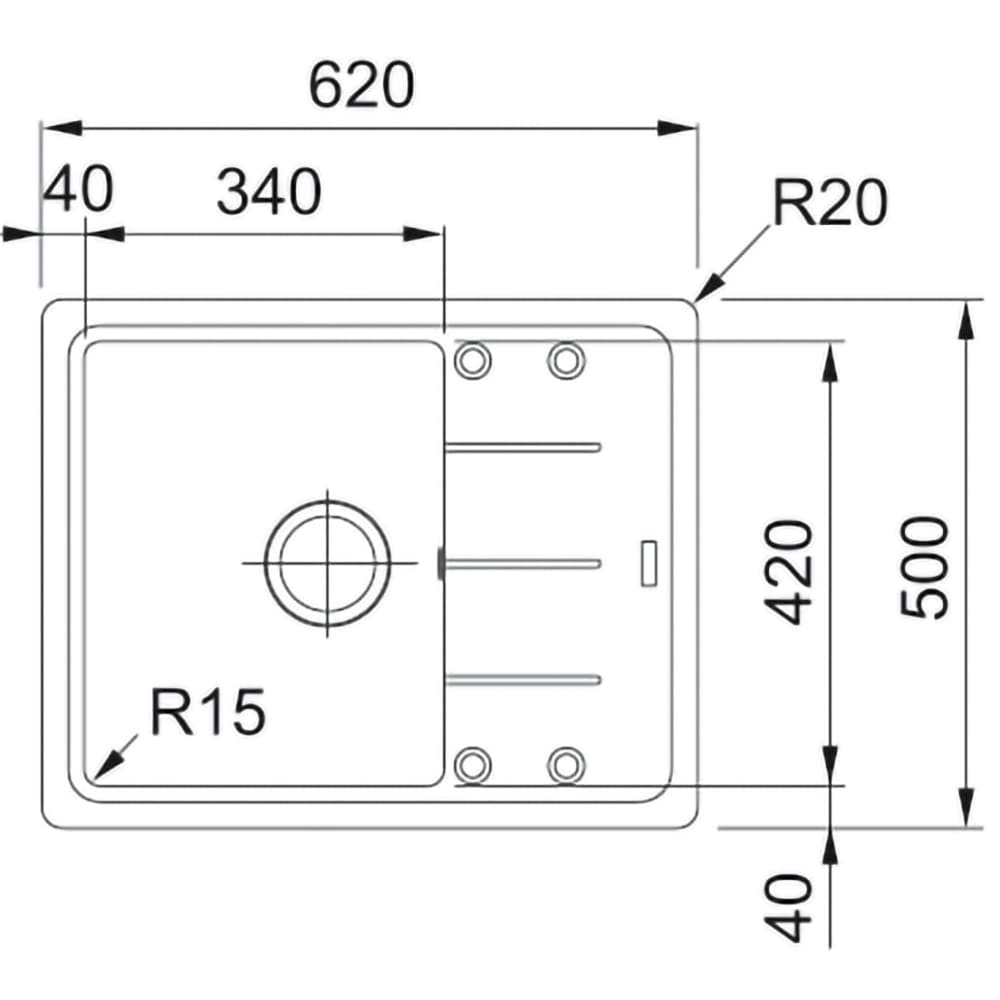 Pachet chiuveta FRANKE BFG 611-62, 1 cuva, picurator reversibil, compozit granit + baterie Lina, gri metalic