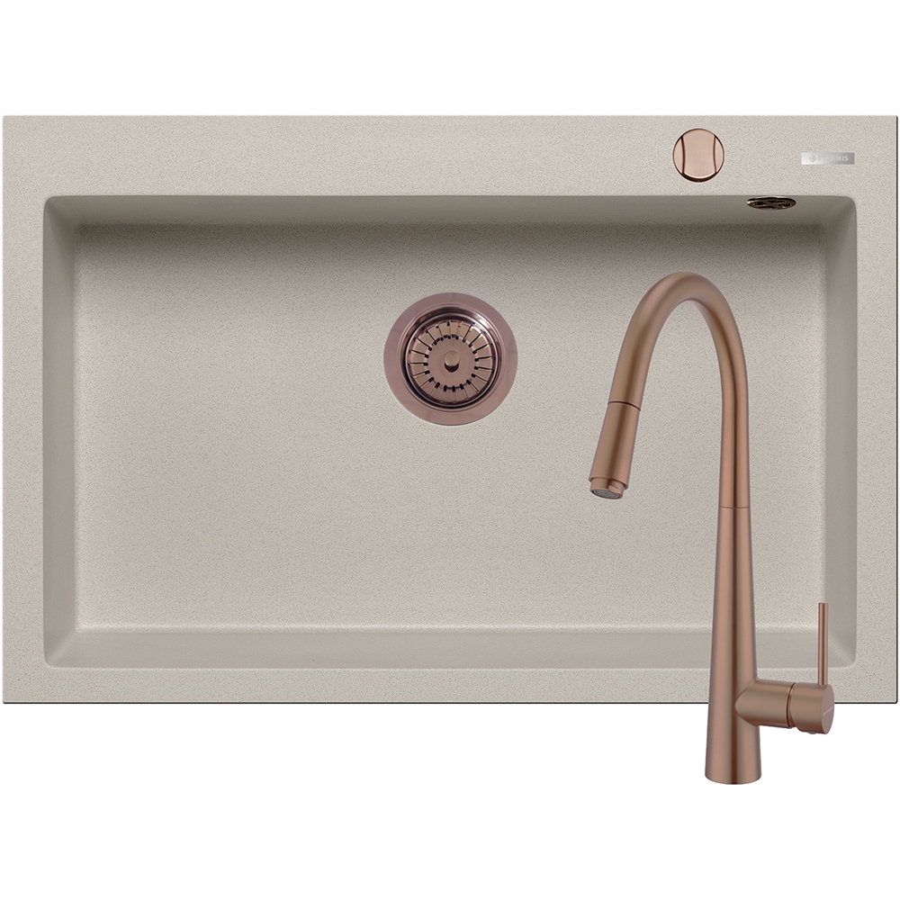 Pachet chiuveta PYRAMIS Altexia Diamond Square 76, compozit granit + baterie, bej