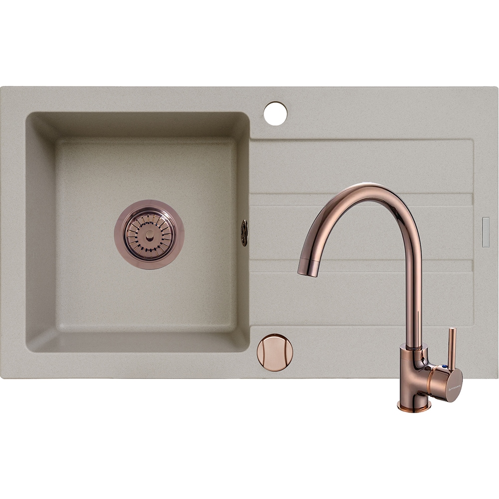 Pachet chiuveta PYRAMIS Altexia Modern 79, 1 cuva, picurator reversibil, compozit granit + baterie, bej