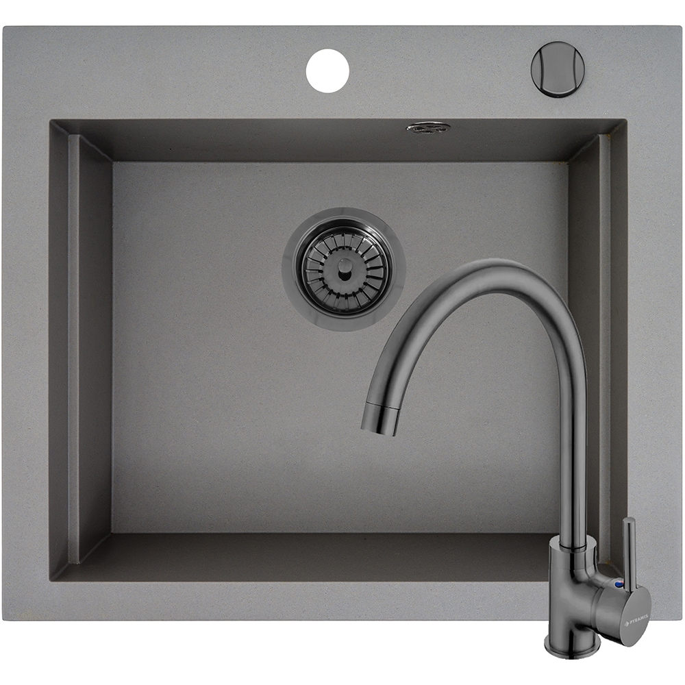 Pachet chiuveta PYRAMIS Altexia Modern Square 57, compozit granit + baterie, gri