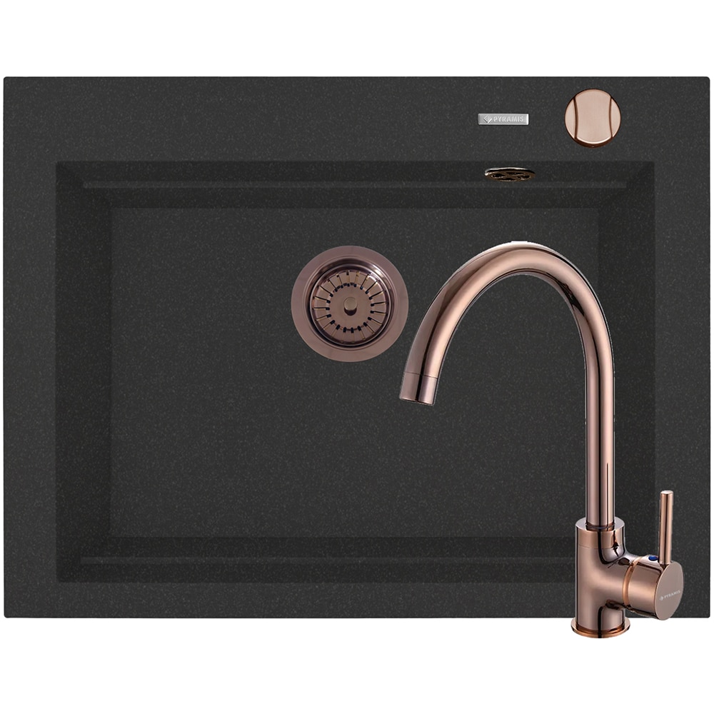 Pachet chiuveta PYRAMIS Altexia Modern Square 67, compozit granit + baterie, negru
