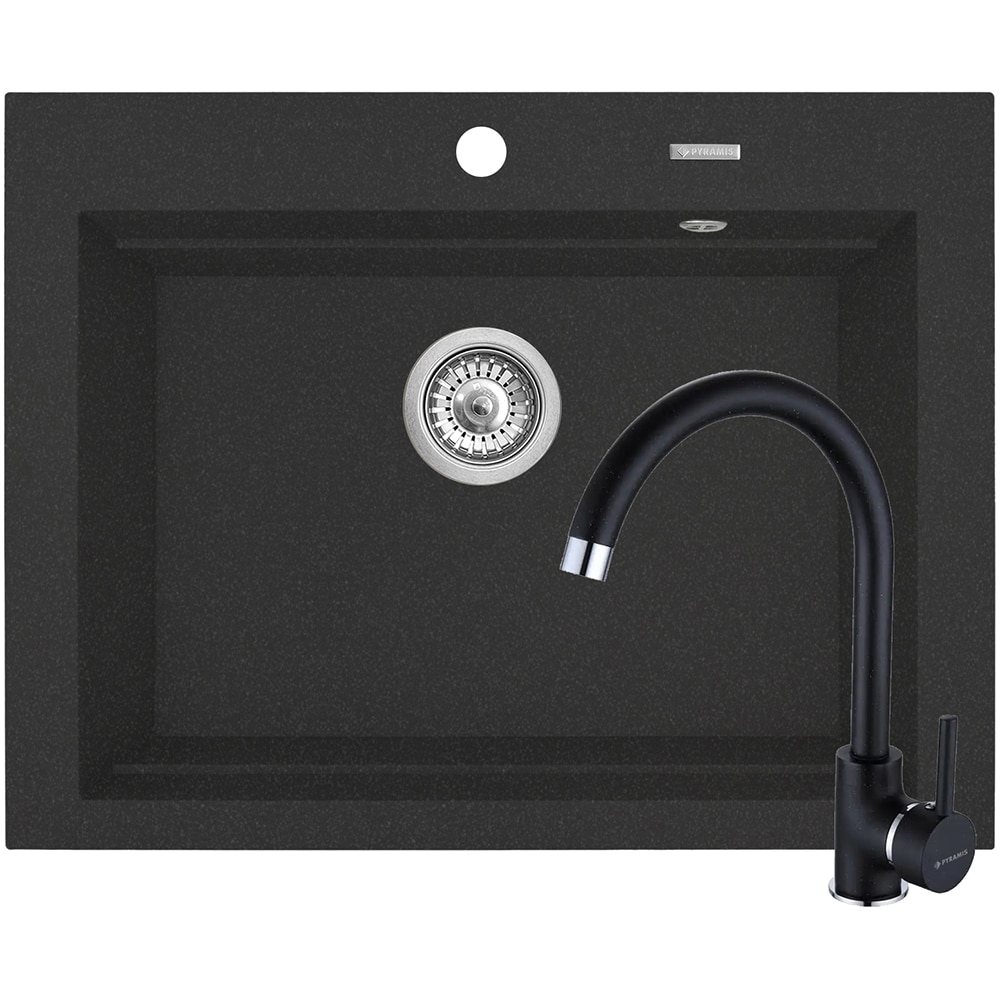 Pachet chiuveta PYRAMIS Chiuveta Altexia Bell Square 67, compozit granit + baterie, negru