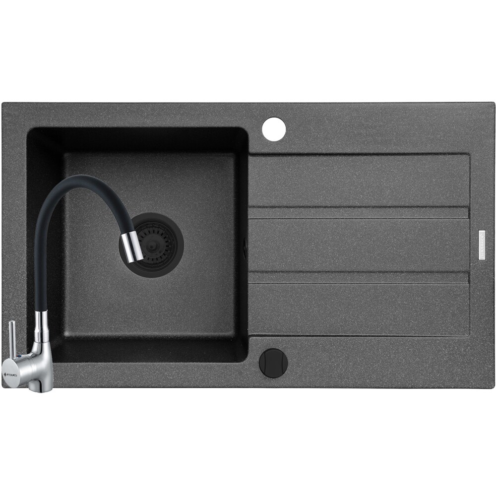 Pachet chiuveta PYRAMIS Complete 76, 1 cuva, picurator reversibil, compozit granit + baterie, negru