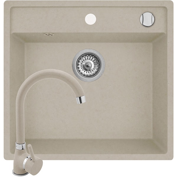 Pachet chiuveta PYRAMIS Pyrsoft Magico Square, compozit granit + baterie 202100274, bej