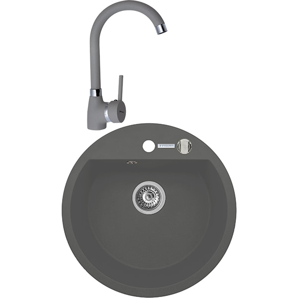 Pachet chiuveta PYRAMIS Round Elegant, compozit granit + baterie, gri