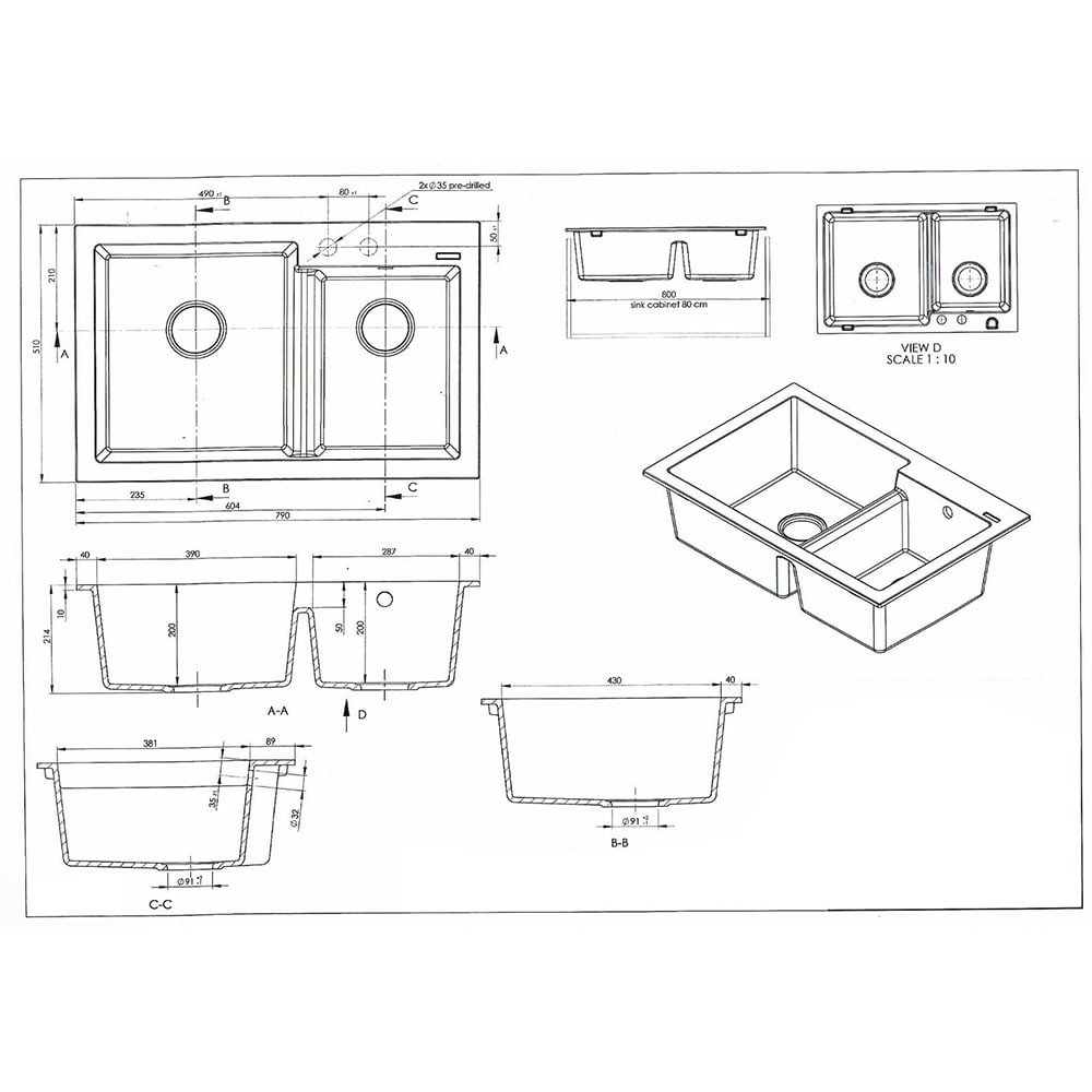 Pachet chiuveta SANDONNA Edyta 79, 2 cuve, compozit granit + baterie, bej