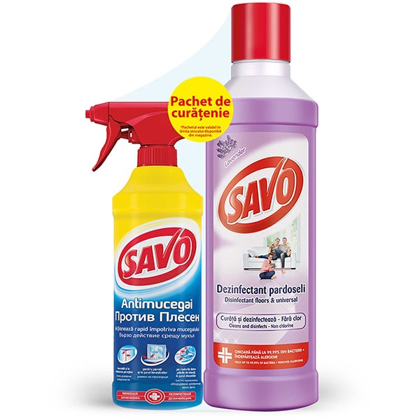 Pachet dezinfectant padoseli SAVO Lavanda 1l + Antimucegai Universal 500 ml