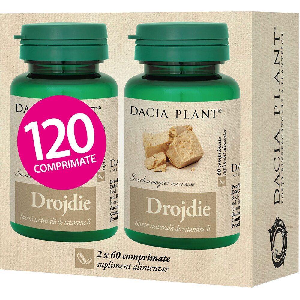Pachet supliment alimentar Drojdie, 2 x 60 comprimate, DACIA PLANT