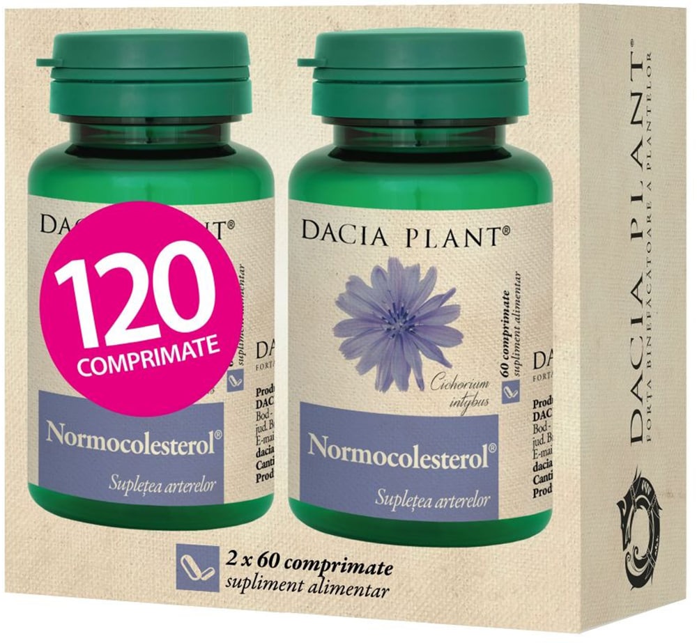 Pachet supliment alimentar Normocolesterol, 2 x 60 comprimate, DACIA PLANT