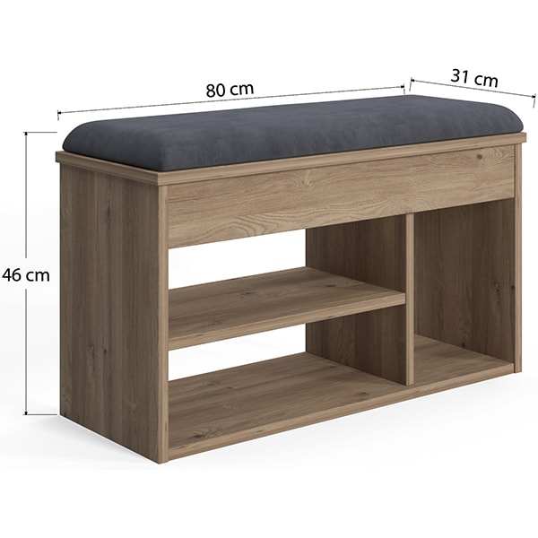 Pantofar tip taburet Pera, stejar, 80 x 31 x 46 cm