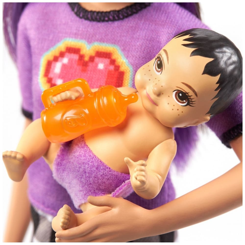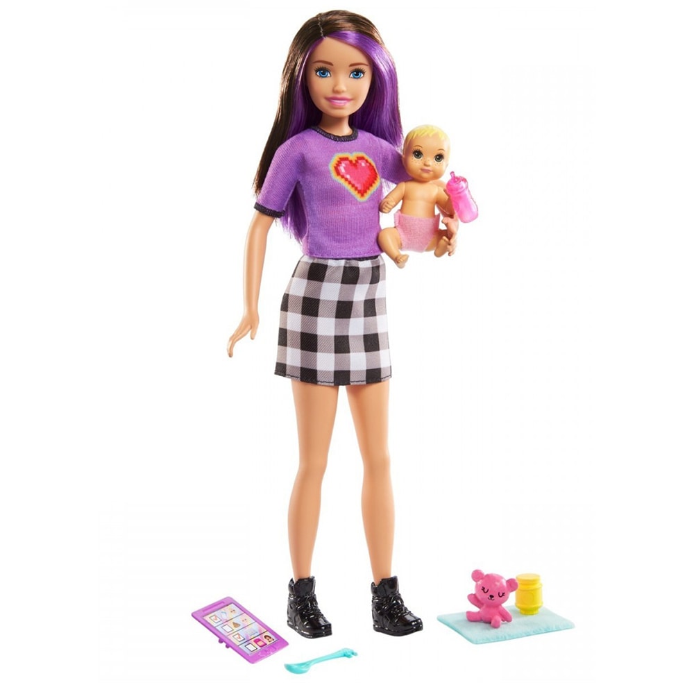 Papusa BARBIE Skipper First Jobs - Babysitter MTGRP10GRP11, 3 ani+, albastru-roz