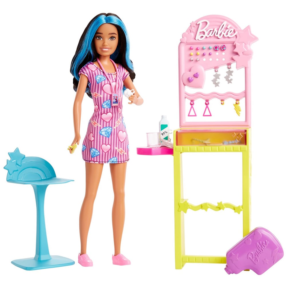 Papusa BARBIE Skipper - First Jobs Ear Piercer MTHKD78, 3 ani+, multicolor