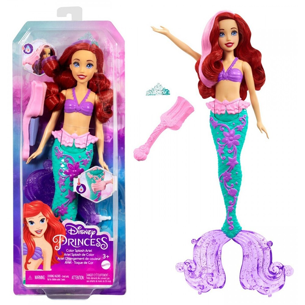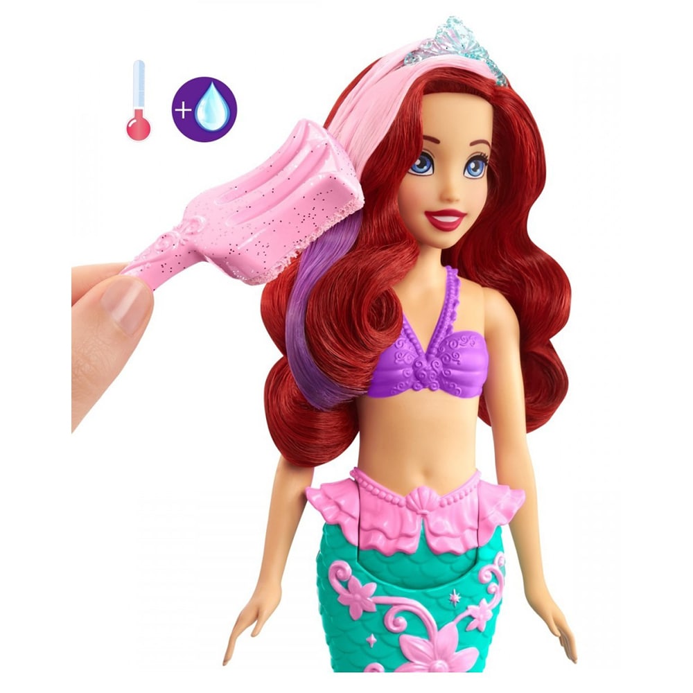 Papusa DISNEY PRINCESS Ariel culori schimbatoare MTHLW00, 3 ani+, verde-mov