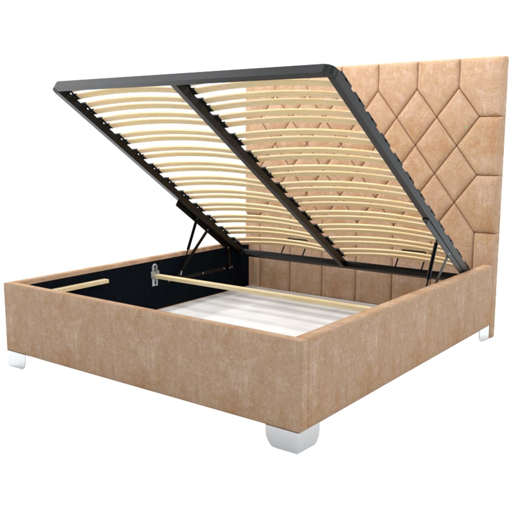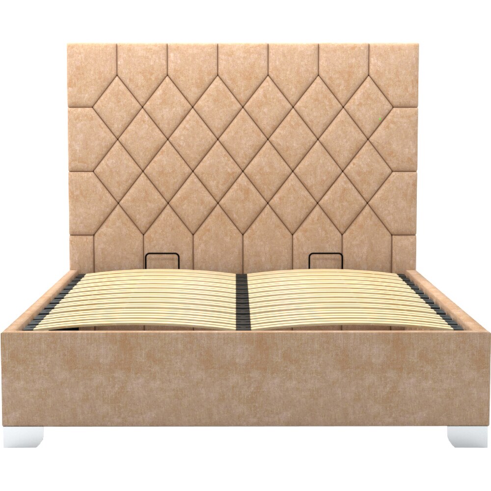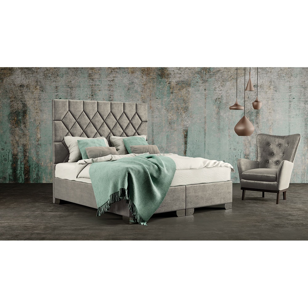 Pat tapitat Rhombus, lada depozitare, somiera, 140 x 200 cm, taupe