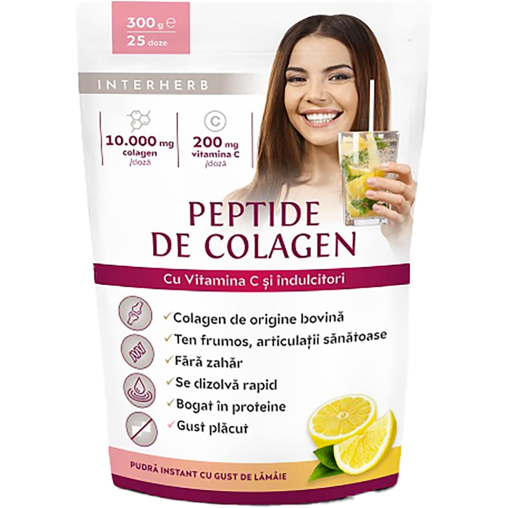 Peptide de Colagen pudra 10.000 mg si Vitamina C cu aroma de lamaie, 300 g, INTERHERB