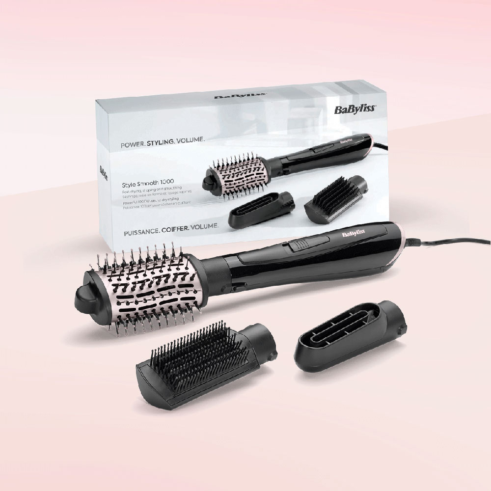 Perie cu aer cald BABYLISS AS128E Style Smooth, 1000W, 2 viteze, 2 trepte de temperatura, Invelis Ceramic, negru