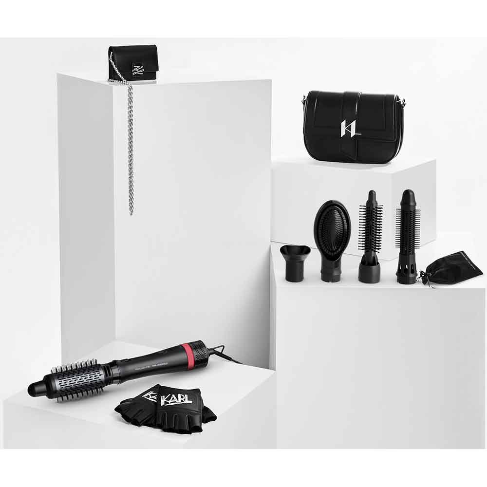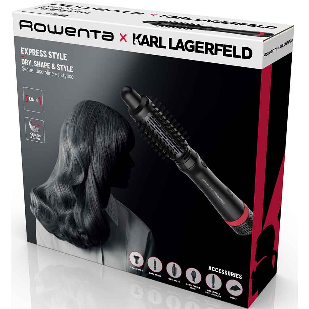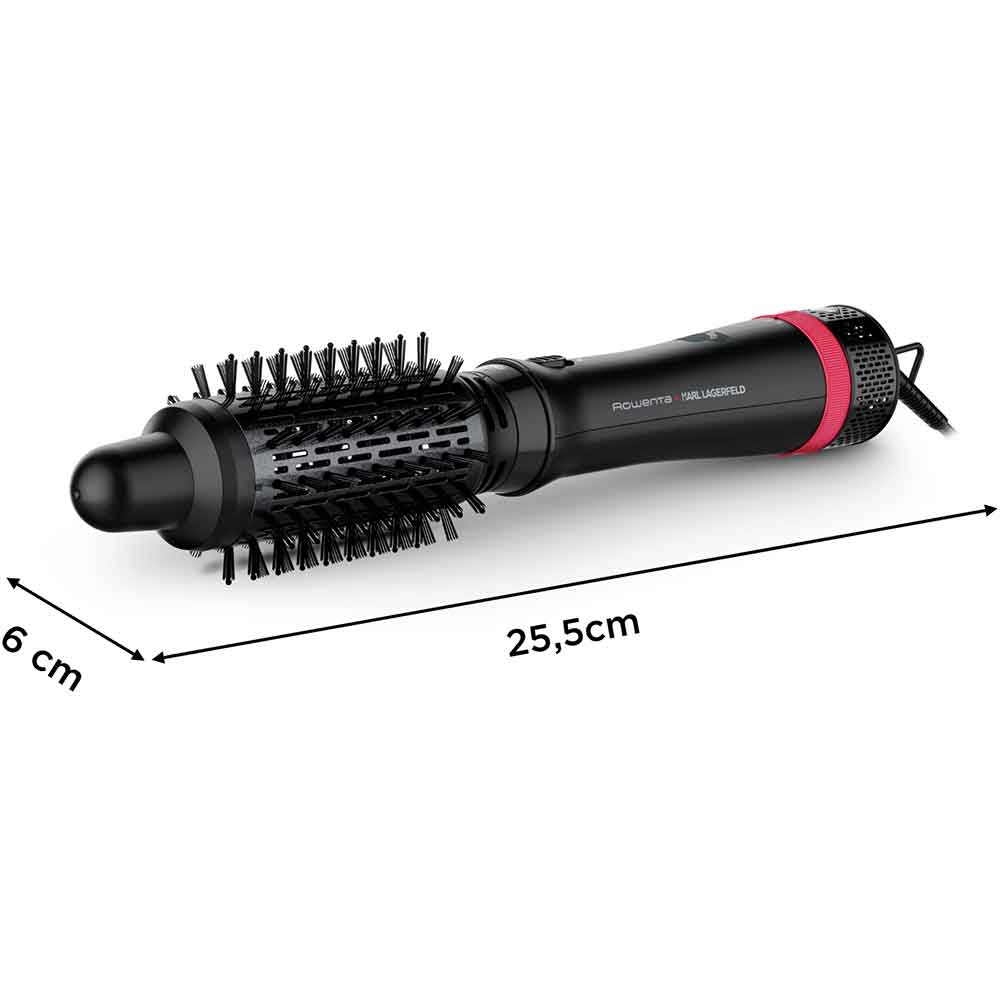 Perie cu aer cald ROWENTA X Karl Lagerfeld CF634LF0, 800W, 3 viteze, 2 trepte temperatura, Invelis Keratina, negru-rosu