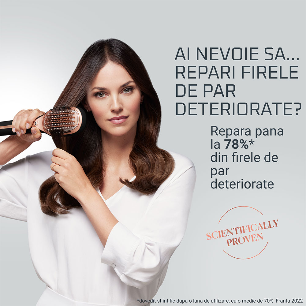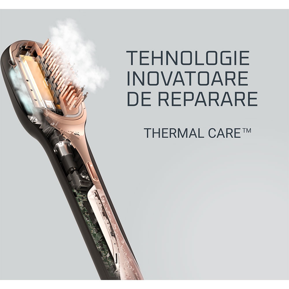 Perie reparatoare ROWENTA Hair Therapist CF9940F0, 165W, Invelis Keratina, negru-maro