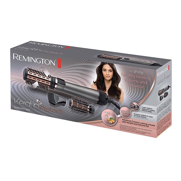 Perie rotativa REMINGTON Keratin Protect AS8810, 1000W, 2 viteze, 2 trepte temperatura, Invelis Ceramic Keratin, gri