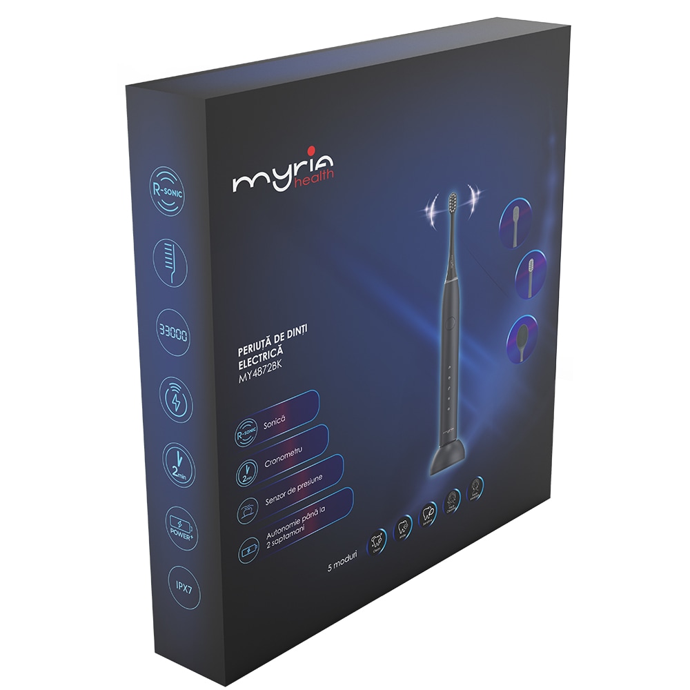 Periuta de dinti electrica MYRIA MY4872BK, 5 programe, 4 capete, negru