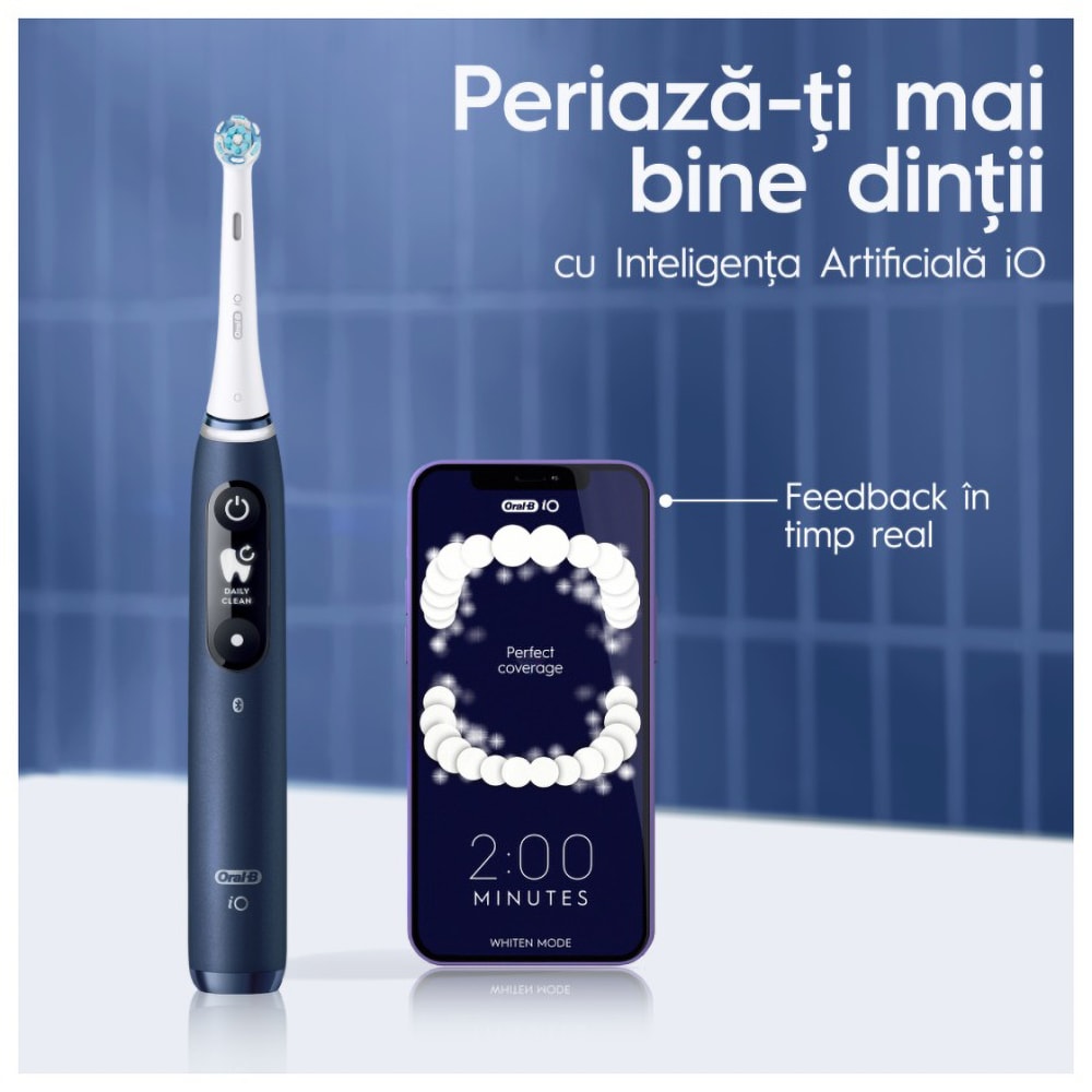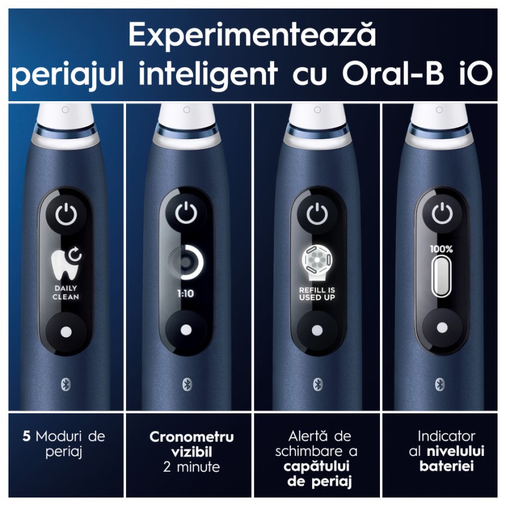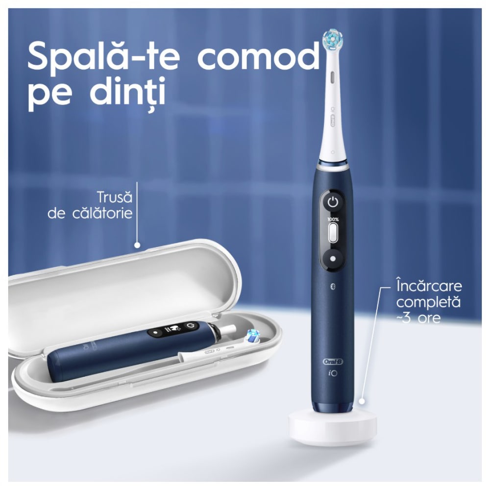 Periuta de dinti electrica ORAL-B iO7, Bluetooth, 40000 miscari/min, Curatare 3D, 5 programe, 1 capat, albastru