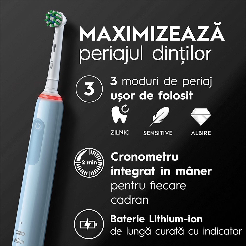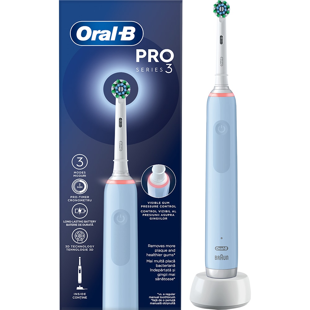 Periuta de dinti electrica ORAL-B Pro 3, 9900 miscari/min, Curatare 3D, 3 programe, 1 capat, turcoaz