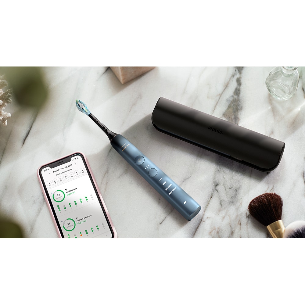 Periuta de dinti electrica PHILIPS DiamondClean Series 9000 Special Edition HX9911/89, 62000 miscari/min, 4 programe, 4 capete, albastru/negru