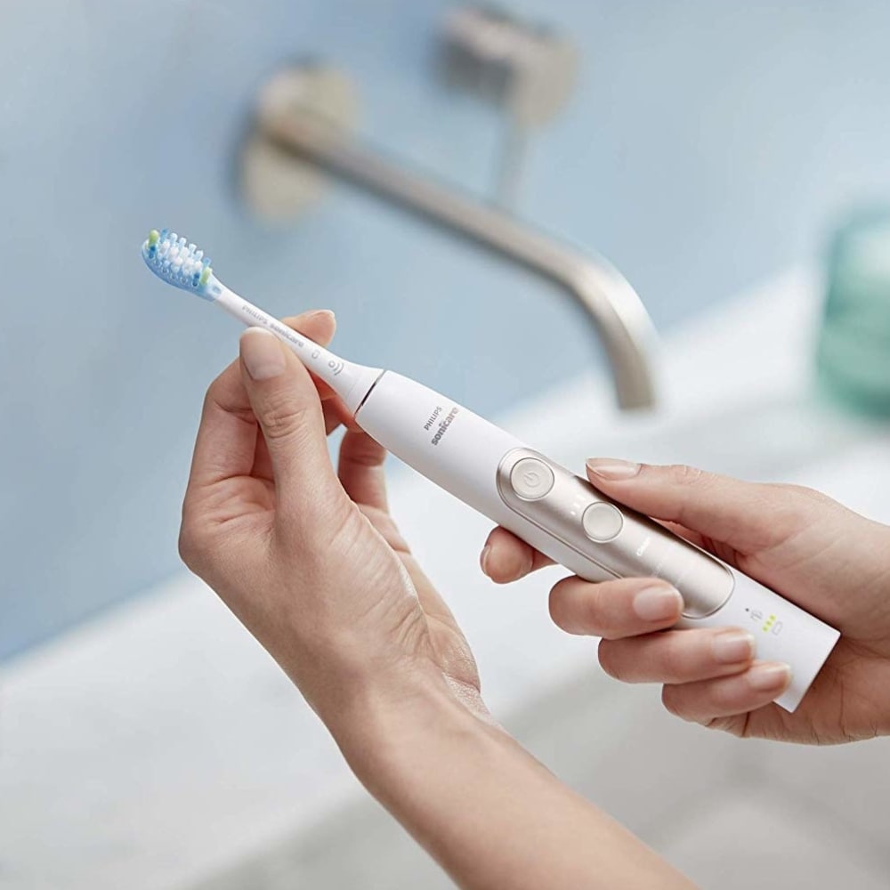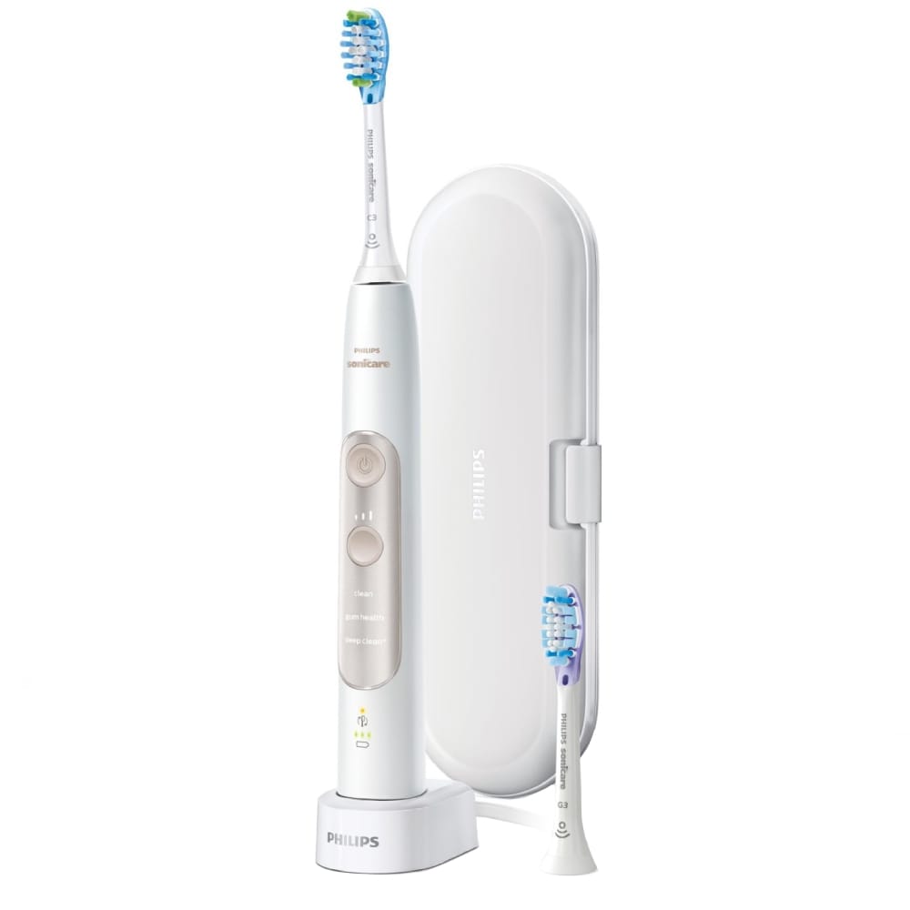 Periuta de dinti electrica PHILIPS Sonicare ExpertClean 7300 HX9601/03, 3 programe, 62000 miscari/min, 2 capete, alb-auriu