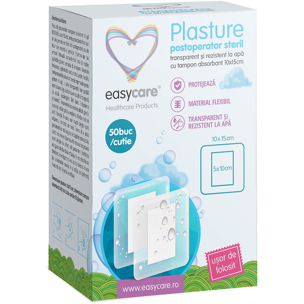 Plasture postoperator steril, transparent si rezistent la apa EASYCARE, 10x15 cm, 50 buc