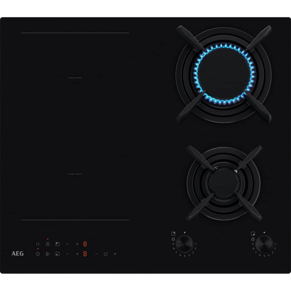 Plita incorporabila AEG HDB64623NB, Gaz + Inductie, 4 arzatoare, Touch Control, negru