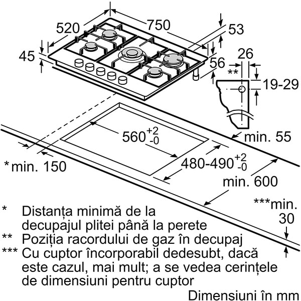 Plita incorporabila BOSCH PGQ7B5B90, Gaz, 5 arzatoare, Wok, inox