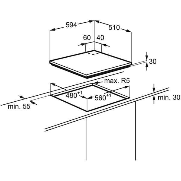 Plita incorporabila ELECTROLUX KGM64311X, Gaz + Electric, 4 arzatoare, inox