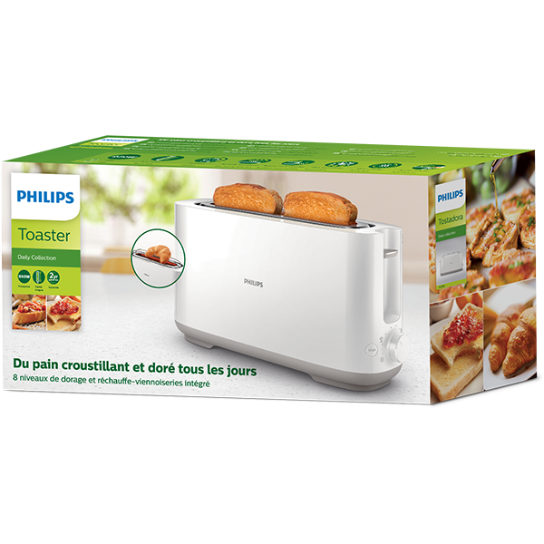 Prajitor de paine PHILIPS Daily Collection HD259000, 2 felii, 1030W, alb-gri