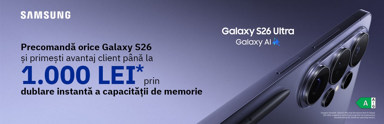 Noua generatie aduce mai multe modele, printre care si Samsung Galaxy S26 Ultra. Acest model reprezinta varful de gama al seriei si este disponibil in mai multe variante de stocare: 256GB, 512GB si 1TB, oferind spatiu generos pentru continut foto-video si fisiere mari. Este primul model cu Privacy Display integrat, pentru protectia confidentialitatii in orice moment, si vine cu un procesor personalizat pentru Galaxy, care asigura performante mai puternice si procesare rapida a taskurilor.