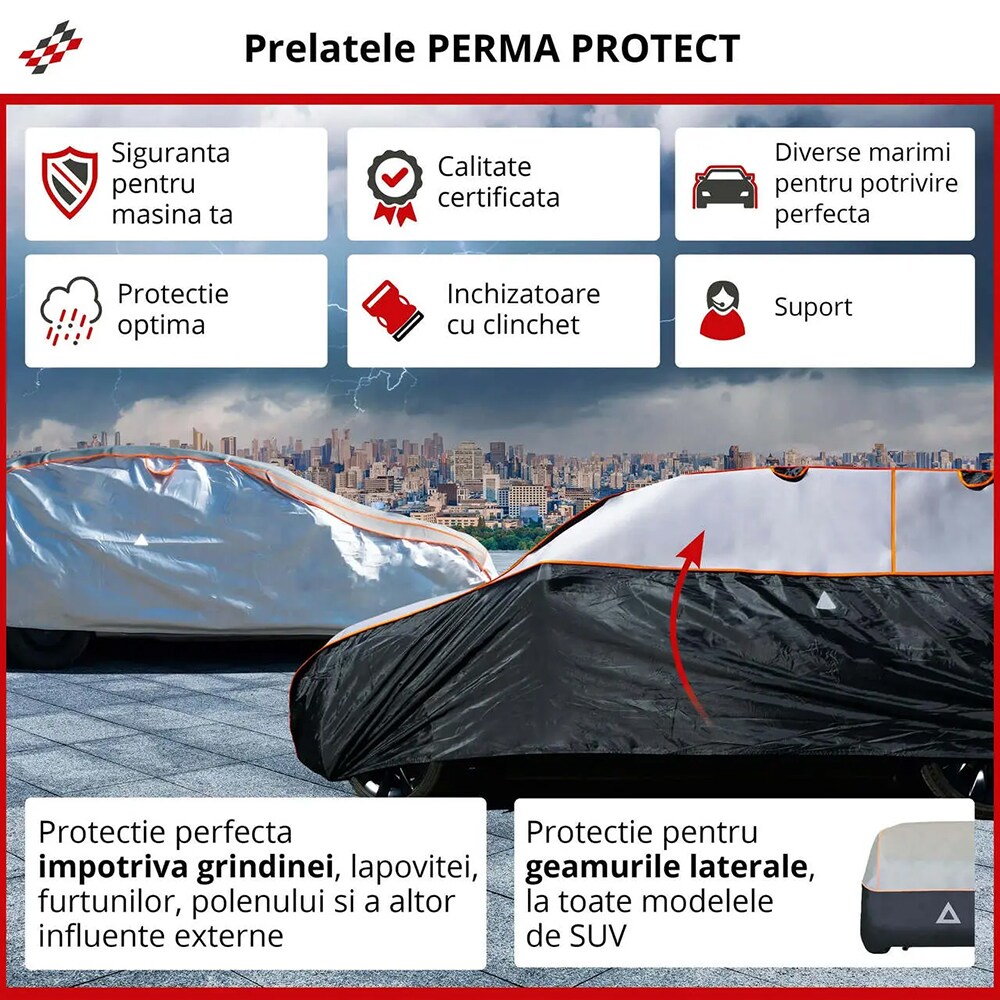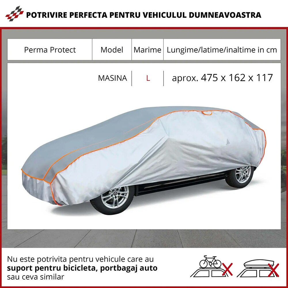 Prelata auto WALSER L, 475 x 162 x 117 cm, antigrindina, argintiu-negru