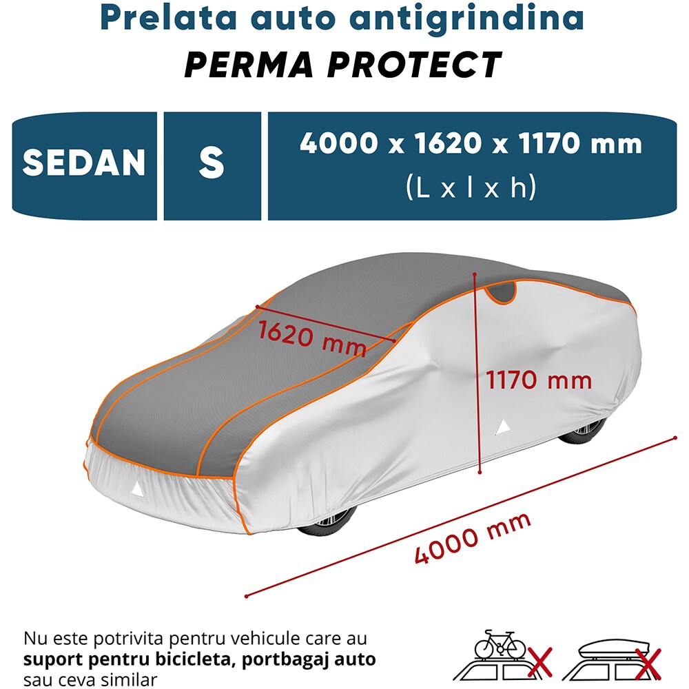 Prelata auto WALSER Perma Protect S, 400 x 162 x 117 cm, gri