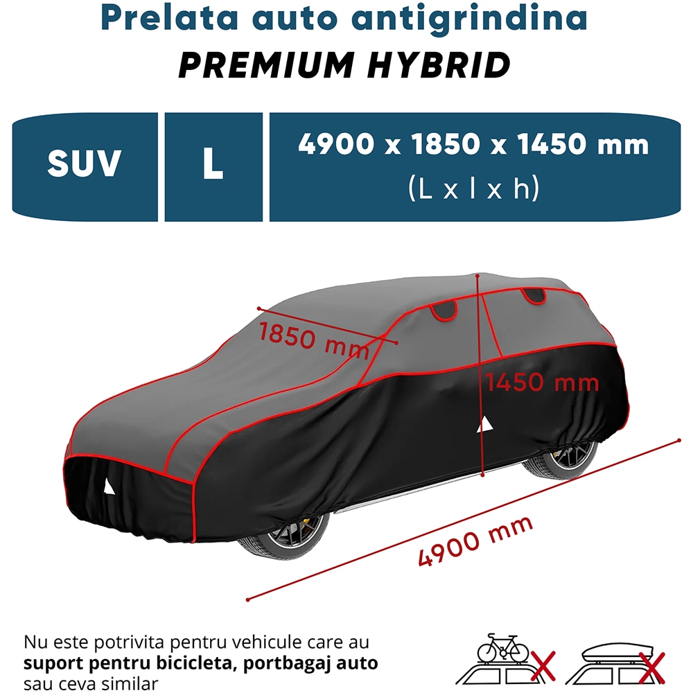 Prelata auto WALSER Premium Hybrid L, 490 x 185 x 1450 cm, gri