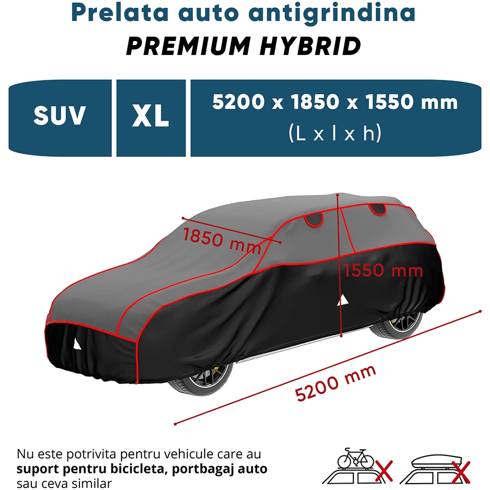Prelata auto WALSER Premium Hybrid XL, 520 x 185 x 155 cm, gri