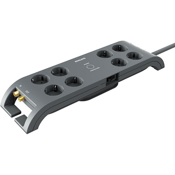 Prelungitor cu protectie PHILIPS SPN5185A/58, 8 prize, 2m, gri