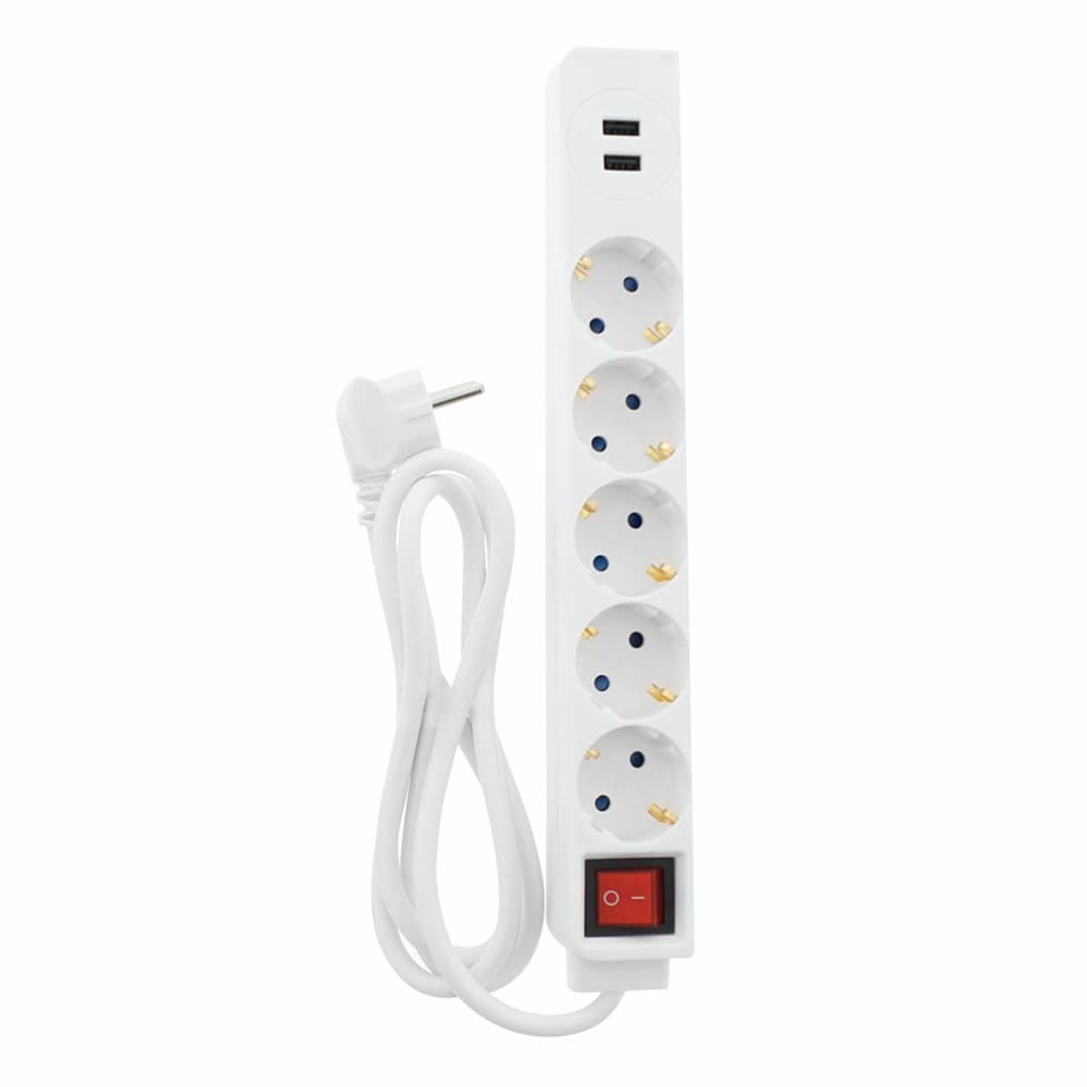 Prelungitor HAMA 9137350, 5 prize Schuko, 1.4m, 2 x USB, alb