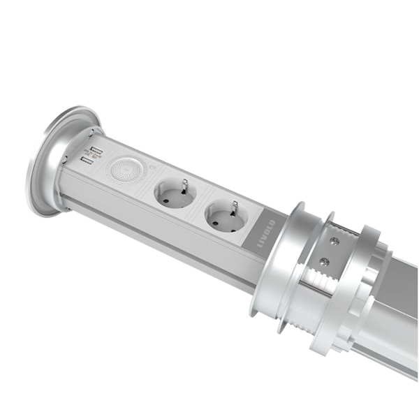 Priza inteligenta incorporabila-retractabila LIVOLO VL-SHS007, Wi-FI, Difuzor Bluetooth, 2 x USB, argintiu