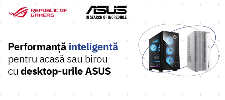 Sistem Desktop PC ASUS DT Mini Tower T500MV-13620H1620, Intel Core i7-13620H pana la 4.9GHz, 32GB, SSD 1TB, NVIDIA GeForce RTX 5060 Dual 8GB, Free DOS