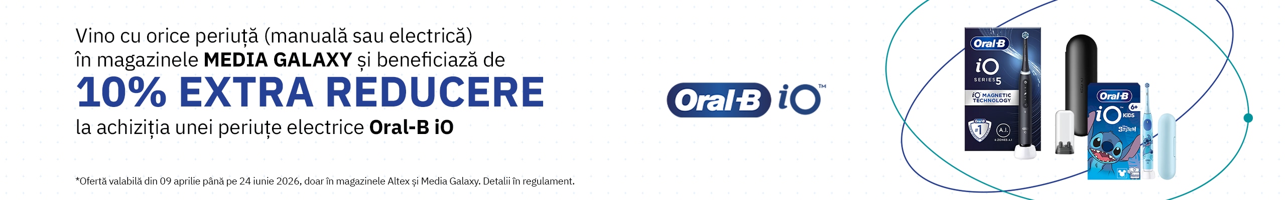 Periuta de dinti electrica copii ORAL-B iO Kids Disney Stitch, 3 programe, 1 capat, albastru