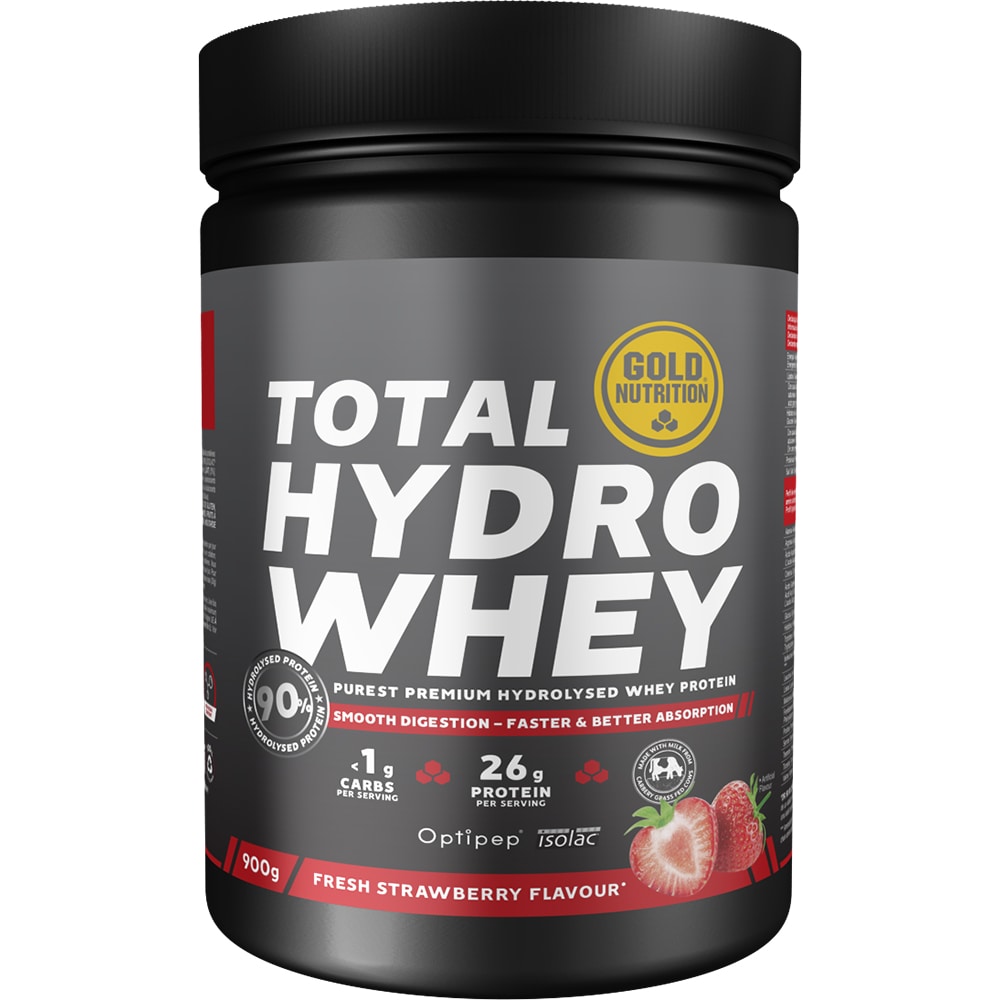 Proteine hidrolizate din zer Total Hydro Whey, capsuni, 900 g, GOLDNUTRITION