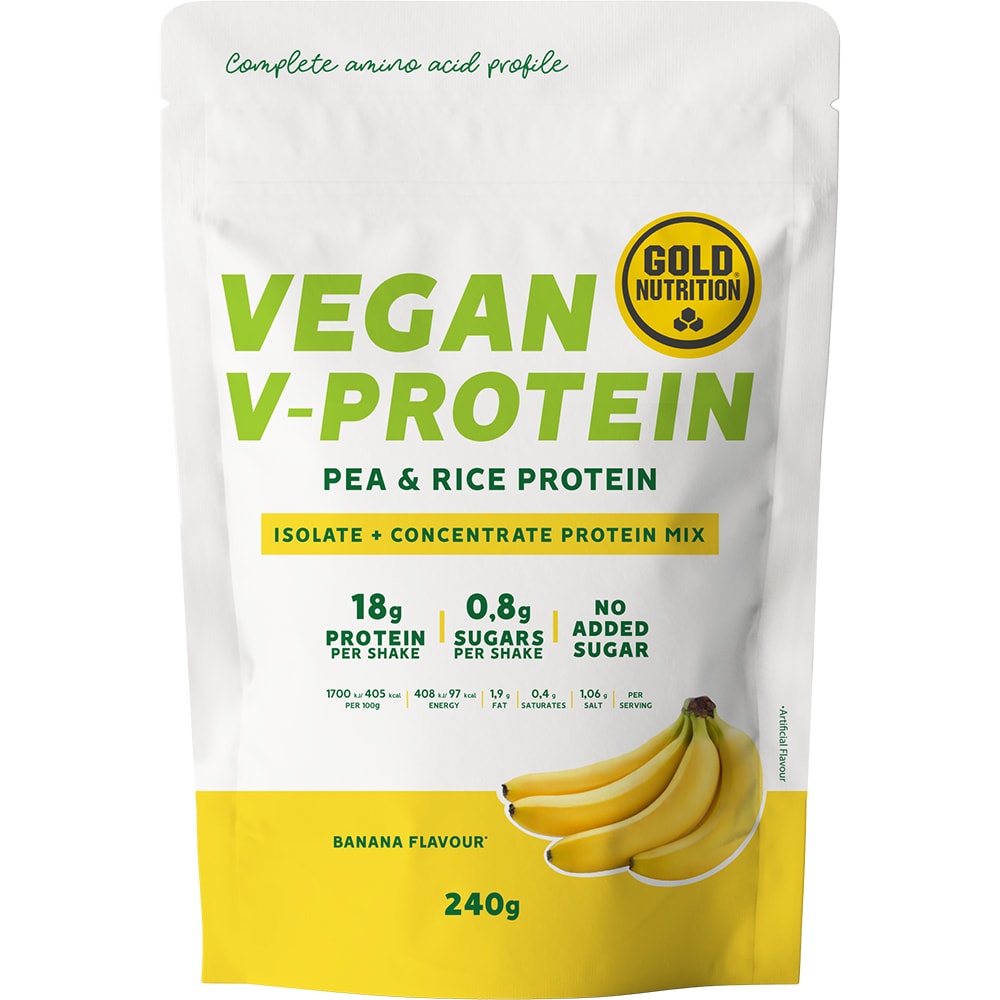 Pudra proteica vegetala V-Protein, banane, 240 g, GOLDNUTRITION
