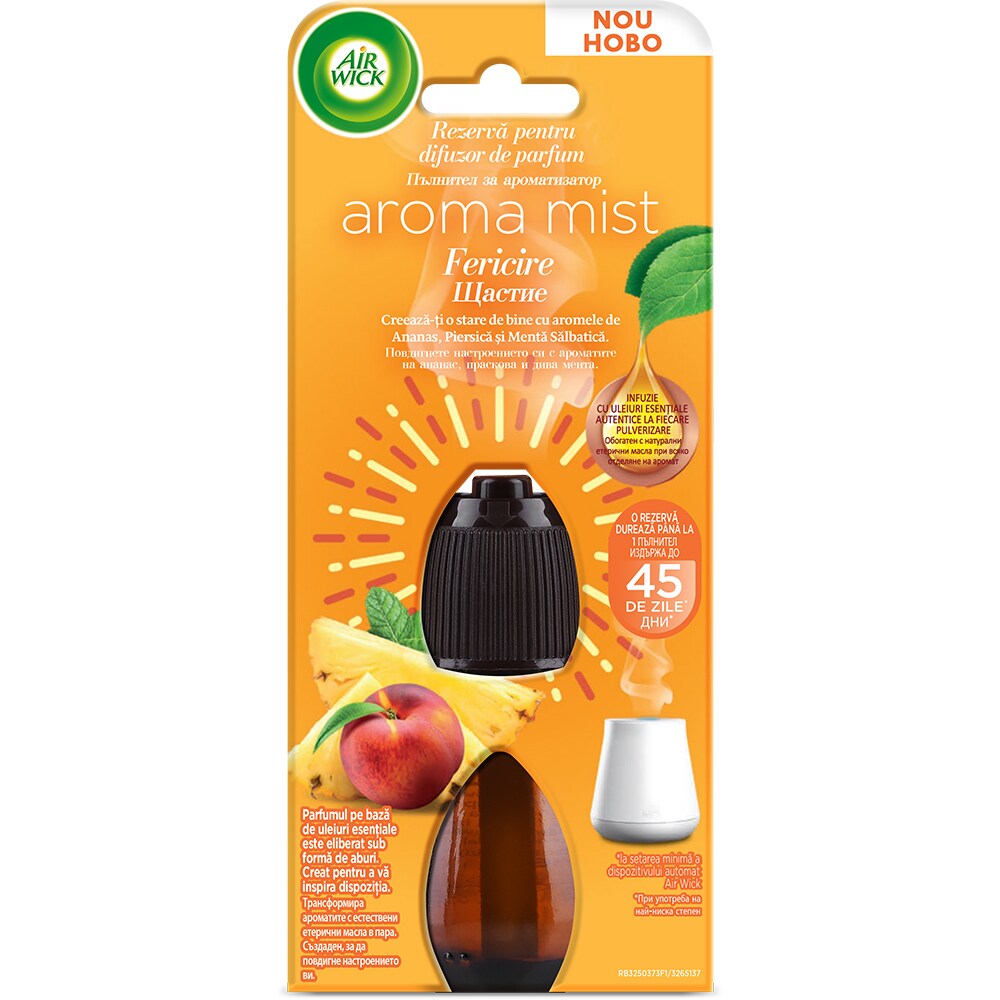 Rezerva pentru difuzor de parfum cu uleiuri esentiale AIR WICK Aroma Mist, Asternuturi proaspete si Orhidee Alba, 20 ml