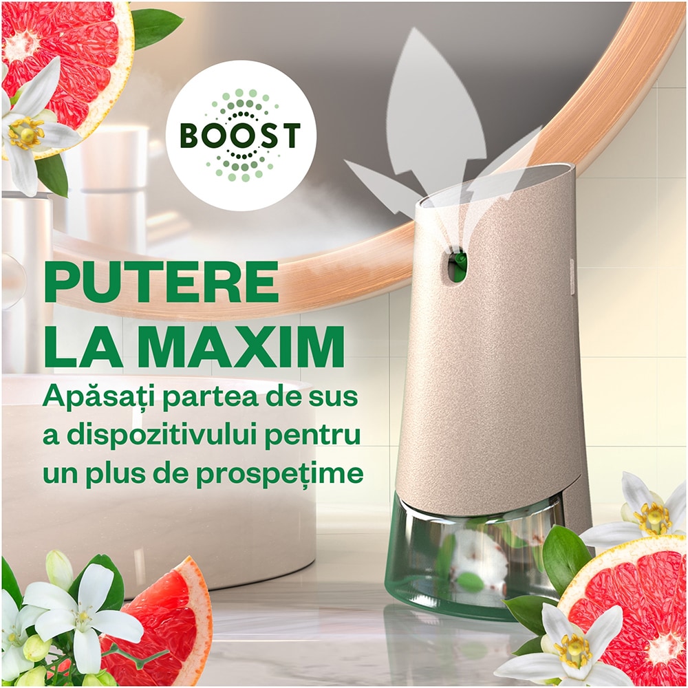 Rezerva odorizant de camera spray automat fara aerosoli AIR WICK Naturmatic, Grepfrut si Flori de portocal, 228 ml