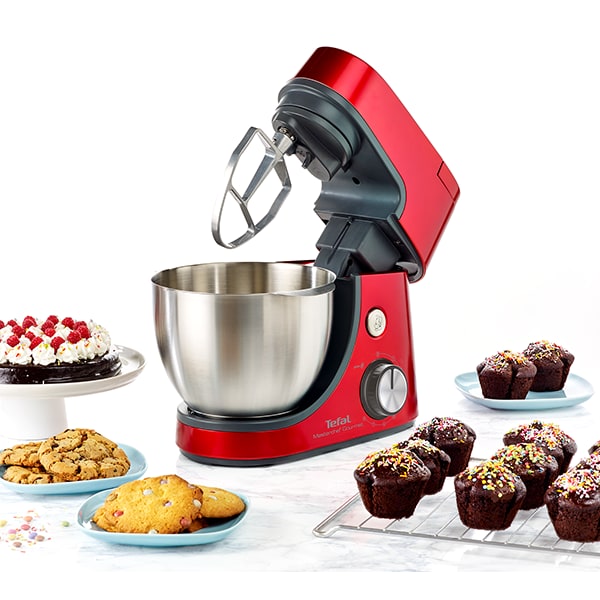 Robot de bucatarie TEFAL MasterChef Gourmet QB516G38, vas 4.6l, blender 1.5l, 1100W, 8 trepte viteza, rosu-argintiu